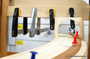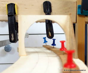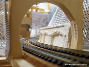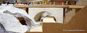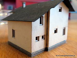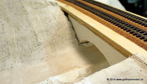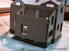 Die Seitenbretter wurden ausgesägt, das Tunnelportal gesetzt, die Brücke am Trassee befestigt (nein, ist noch nicht fertig geritzt) und die Korkstreifen angeleimt - jetzt muss der Leim Trocknen. Hier sind die Bilder dazu: 11/03/14 Die nächsten Schritte11/09/14 Etwas Gips und Ritzen11/22/14 Bahnwärterhaus und Parkplatz11/23/14 Das Bahnwärterhauswurde heute fertiggestellt mit Fassaden, Fenstern und Dach - ist noch ziemlich knifflig, das Ganze. Viele der kleinen Teile mussten mit der Pinzette platziert werden. Eine Fassade wurde allerdings zu ungenau platziert und konnte nicht mehr korrigiert werden, was dann bei den Fenstereinsätzen brutal sichtbar wird. 11/30/14 Das Schotterbettoder die Kunst des Schotterns ...