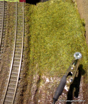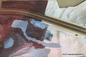 Ebenfalls soll das Einschottern von Gleisen mit Gleisüberhöhung getestet werden - mal sehen, wohin es den Schotter zieht. Hier die Bilder der ersten Versuche: 12/06/14 Verschiedene Schotter - welcher ist der Richtige?12/21/14 Schienen alternAuch die Schienen sollten ja farblich noch nachbehandelt werden - den ersten Versuch habe ich mit Farbe gemacht; war nicht ganz so überzeugend weil zuviel Farbe aufgetragen (Zittern inbegriffen). Von einem Kollegen habe ich den Tipp mit den Patienierstiften von Woodland Scenics erhalten, was auf einem Stück Gleis auch ganz gute Resultate ergeben hat - werde diese Stifte auch noch auf meinem Teststück ausprobieren - Fortsetzung folgt. 12/21/14 Patienierstifte von Woodland ScenicsEs hat mir keine Ruhe gelassen - ich musste die Patinierstifte ausprobieren! Und das Resultat ist genial, der Auftrag ist hauchdünn aber deckend, einfach aufzubringen und man kann gar nicht zittern - der Stift wird an der Schiene angelegt und durchgezogen - einfach (ich weiss, ich wiederhole mich) genial. 02/05/17 Die Landschaft soll entstehenAm Diorama wird mal wieder gewerkelt - um einige Technologien auszuprobieren, bevor es an die Anlage geht. Der linke Teil wurde eingeschottert (das kann ich mittlwerweile) und dann die Grundfarbe auf die Landschaft aufgebracht - braun, wo später Wiese hinkommt und grau für die Felsstruktur. Am Freitag ist der Grasmaster eingetroffen und soll am Diorama seinen ersten Einsatz leisten. 02/08/17 Das Gras wächstEinen erster Versuch mit dem Grasmaste wurde heute durchgeführt - an einer gaaaanz kleinen Ecke des Dioramas - man weiss ja nie ;-) Ging eigentlich ganz gut, auch das Resultat kann sich meines Erachtens sehen lassen - bin gespannt, wie es dann nach dem Absaugen des überschüssigen Materials aussieht. 02/09/17 und wächst02/12/17 Weitere Geländebauversuche04/23/17 Methode à la LinusBei meinem Besuch bei Linus Huttner habe ich das Diorama mitgenommen und er hat mir «seine» Methode der Felsgestaltung und Colorierung gezeigt - hier die ersten Resultate. Mir gefällt diese Art ungemein und ich möchte die Felsgestaltung auch annähernd so wie Linus diese auf seiner Anlage hat - also ist üben üben üben angesagt. 04/24/17 Erste eigene Versuche |