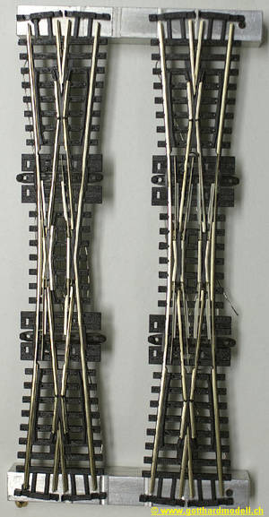 Die Erfahrungen aus dem Bau der "alten" Anlage haben gezeigt, dass es für einen störungsfreien Betrieb unerlässlich ist, dem Gleismaterial eine sehr hohe Beachtung zu schenken. Dies gilt vor allem in später nicht mehr zugänglichen Bereichen wie Schattenbahnhöfen usw., aber nicht minder auch für alle anderen Bereiche, soll der Fahrspass nicht getrübt werden. Zu den betrieblichen Aspekten kommen dann, will man eine vorbildgetreue Anlage realisieren, auch noch die Optischen hinzu. Der Betriebssicherheit zuliebe haben viele Hersteller das Schienenprofil verändert, was sich m.E. negativ auf die Optik auswirkt. Eine ausgezeichnete Übersicht aller Hersteller findest Du auf der Linkseite unter SpurN. Ich habe mich aus den genannten Gründen (Optik, Betriebssicherheit, Auswahl) für die Gleise des englischen Herstellers PECO FineScale Code55 entschieden. ![]() Das Weichensortiment von PECOVon links nach rechts: ![]() KreuzungsweichenLinks: Rechts: ![]() Spezial WeichenUnd hier noch der Vergleich von PECO zu der nach meinen Vorstellungen angefertigten Dreiweg-Weiche durch Walter Völklein Diese Dreiweg-Weiche wird in Wassen zum Einsatz kommen; dort ist auf Gleis 1 in Südrichtung noch eine verbaut. |