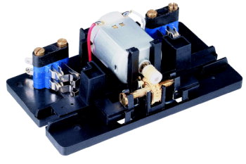 Ein Nachteil der Motor- und Servoantriebe gegenüber den Magnetspulenantrieben sei hier aber nicht verschwiegen: Der Platzbedarf! Denn während die Magnetspulenantriebe mit einer sehr flachen Bauweise auskommen sind die Motor- und Servoantriebe aufgrund des eingebauten Motors doch wesentlich höher, dadurch werden sie immer Unterflur eingebaut und hier muss dann bei der Planung die Durchfahrhöhe eines eventuell darunterliegenden Geleises beachtet werden! MagnetdoppelspulenantriebeDiese werden seitlich an die Weiche "eingeklipst" oder sind fest mit der Weiche verbunden. Bei gewissen Herstellern kann der Weichenantrieb durch Umdrehen (linken und rechten Antrieb vertauschen) "tiefergelegt" werden und verschwindet dadurch in der Grundplatte - doch Vorsicht - ist die Aussparung zu klein, lässt sich der Antrieb im Falle eines Defektes ohne Demontage der Weiche nicht entfernen!