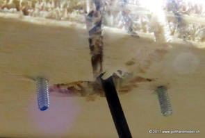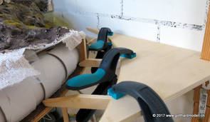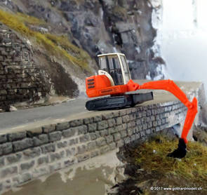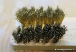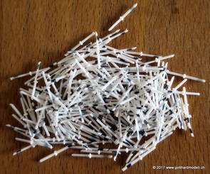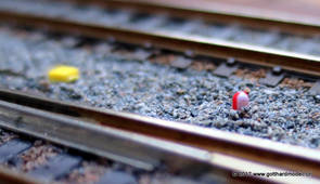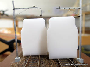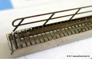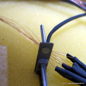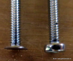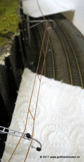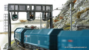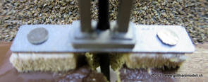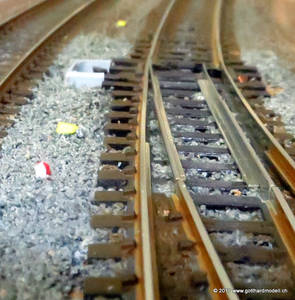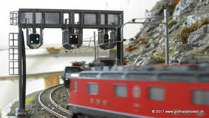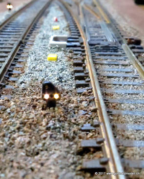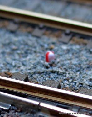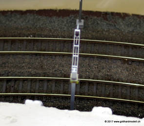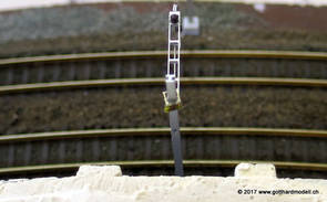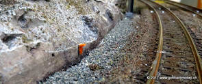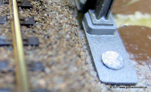 Die Strecke (Teil 9)03/27/17 SignalbrückenbefestigungHeute habe ich die M2x20mm Schrauben beschafft und gleich mal erste Versuche gemacht. Da der Schraubenkopf zu hoch ist wurde er kurzerhand auf das Minimum abgefeilt - so kann er problemlos mit Farbe und Schotter kaschiert werden. 03/28/17 Schottern - schon wieder ...Auch die Strecke "obere Wattingerbrücke - Bahnhof Wassen" wurde nun für das Einschottern vorbereitet - da die darunter liegende "Testanlage" abgedeckt ist bietet sich dies geradezu an. Wenn dieser Streckenteil eingeschottert ist sind dann (ausser dem Bahnhof Wassen) alle sichtbaren Strecken eingeschottert und der Geländebau (am Leggistein) kann fortgesetzt werden - mit Felsen, Gras und Bäumen ... Ach ja, der Servoumbau an der mittleren Meienreussbrücke steht auch noch an ;-) 03/29/17 TEE «Roland» in der Morgensonne03/29/17 ZwergsignaleHeute wurden auch zwei Zwergsignale eingebaut; d.h. so richtig im Schotterbett «versenkt». Dazu wurde der Schotter bis auf das Trasse hinunter entfernt, der Zwerg eingebaut und danach wieder geschottert. Damit die Widerstände durch die Bohrung hindurch passen wurde ein 3mm Loch gebohrt. 03/29/17 Weitere ImpressionenSo als Tagesabschluss und auf Anfrage aus dem Albula-Forum (wie gross ist denn so ein Zwergsignal?) habe ich noch weitere Bilder geschossen, welche meist kommentarlos präsentiert werden. 03/31/17 Lichtraumprofil