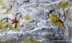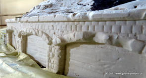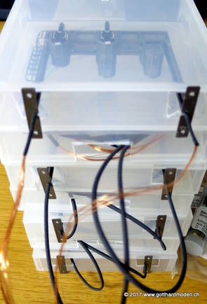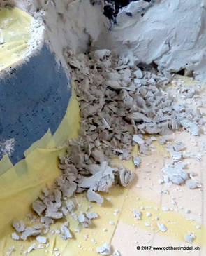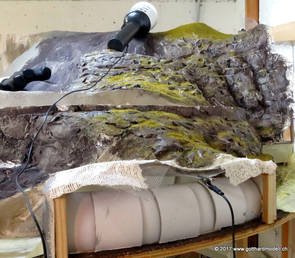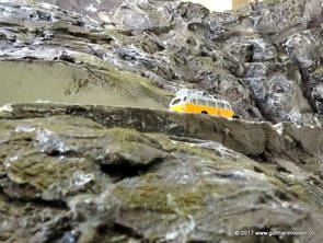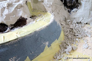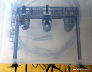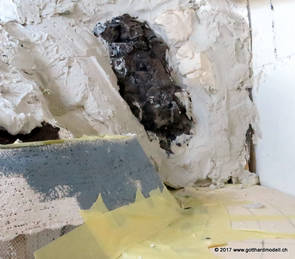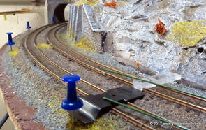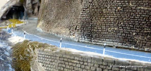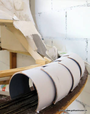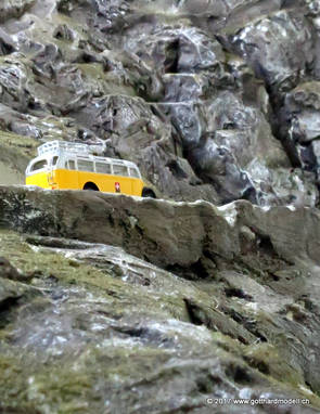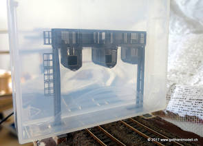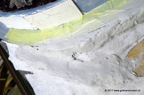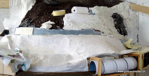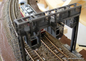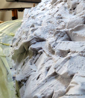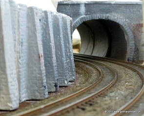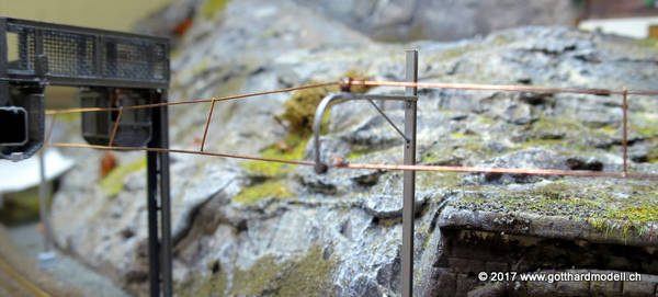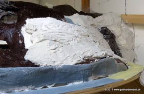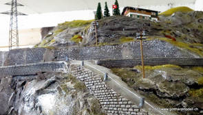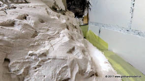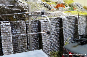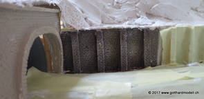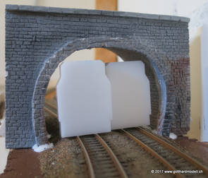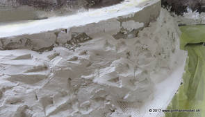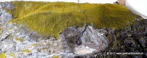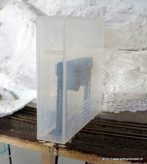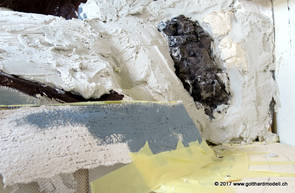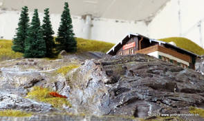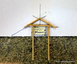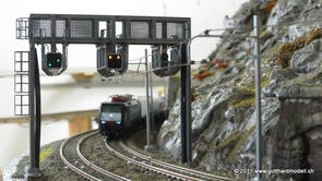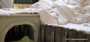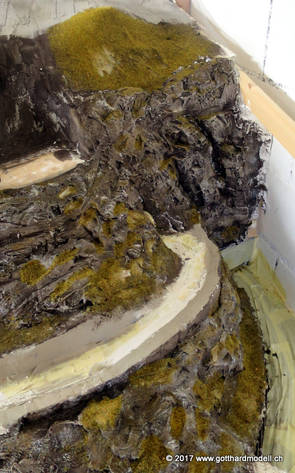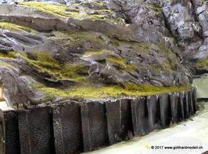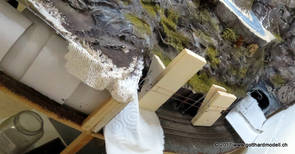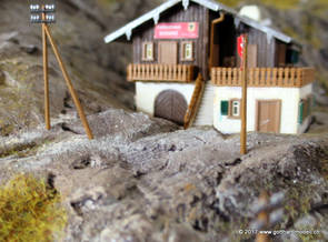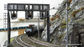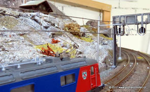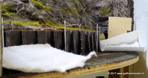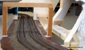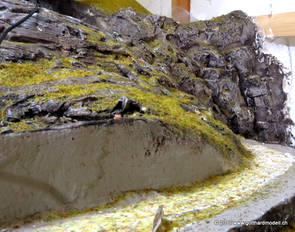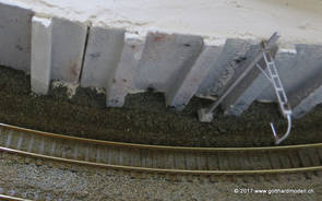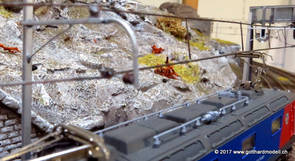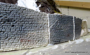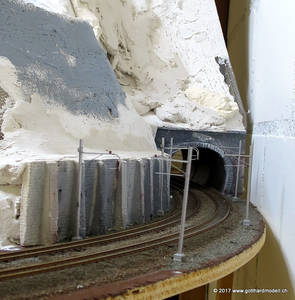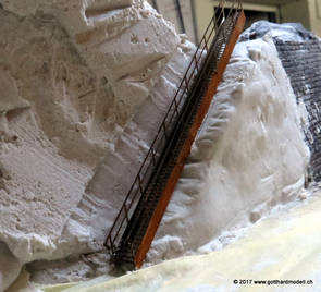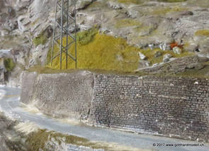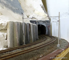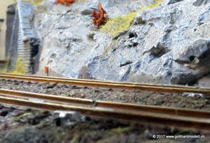 Im Weichenfeld des Spurwechsels am Pfaffensprung wurden mal probehalber Weichengrenzzeichen und weitere kleine Details platziert, um mal einen ersten Eindruck über die Wirkung zu erhalten Hier einige Impressionen: 04/16/17 Erste Vorbereitungen für den LeggisteinUm den Leggistein vorantreiben zu können sind einige Vorbereitungen nötig - so musste die Sustenstrasse erweitert werden, das Tunnelportal des Leggisteinkehrtunnels (später sehr schlecht zugänglich) wurde positioniert, die noch fehlenden Spanten an der Geländehülle wurden erstellt und auch alle Züge mussten «umparkiert»; d.h. in Sicherheit gebracht werden. 04/17/17 Leggistein - Geländehülle entsteht04/18/17 Und die «Sauerei» kann beginnen ...04/19/17 «Sauerei» die ZweiteDie Gipshaut wurde vervollständigt und dann kommt die Felsgestaltung dran - literweise Gips anrühren und an der richtigen Stelle hinpappen ;-). Die Einfahrt zum Leggistein-Kehrtunnel wurde (da nachher sehr schlecht zugänglich) bereits etwas ausgestaltet. 04/20/17 Nordportal Leggistein-KehrtunnelDie Zufahrt zum Nordportal des leggistein-Kehrtunnels wurde mit den N-Train Oberleitungsmasten bestückt - und diese Masten wiederum mit Zubehörteilen von AB-Modell (Mastnummern und Warnschilder). Die Zubehörteile sind so klein, wenn da eines «flöten» geht - nun ja, ich habe es nicht mehr gefunden ... 04/20/17 Weitere Impressionen vom Leggistein04/28/17 Der Fels nimmt Gestalt an04/30/17 Und es nimmt kein Ende05/02/17 Material ist eingetroffenMit den Schaltdecodern SD2 von Uhlenbrock werden die Signaldecoder und die Schattenbahnhofsgleise ein- und ausgeschaltet. Den Fahrleitungsdraht von N-Train werde ich als Alternative zum Profi-Fahrdraht von Sommerfeldt testen; die Zwergsignale decken den gesamten Bedarf des Streckenabschnittes vom Pfaffensprung bis nach Eggwald (also Phase 1) ab. Die «Sicherheitsverpackung» für die Signalbrücken dient dazu, die bereits auf der Anlage befindlichen Signalbrücken vor Schmutz und Beschädigungen zu schützen. 05/05/17 NachschubDie Aktivitäten der letzten Tage und Wochen haben ihren Tribut gezollt - die Vorräte sind zur Neige gegangen, vor allem die Gipsbinden ... Auch die Heki Granit-Farbe, welche als Erstes auf den Gips kommt, hat gefehlt; nun ist heute der Nachschub eingetroffen, so dass am Felsen des Leggistein wieder weiter gearbeitet werden kann. 05/07/17 Granit und ElektronikMit der Granit Grundfarbe wurde der Leggistein vorbereitet für die anschliessende Lasur - jetzt muss es zuerst mal Trocknen. Auch der erste Schaltdecoder für das Ein- und Ausschalten der Signaldecoder wurde montiert - funktioniert ausgezeichnet. 05/14/17 Nur Granit und Fels05/20/17 Farbliche Nachbehandlung der Felsen05/21/17 Einfahrt Leggistein TunnelUm auch die Einfahrt in den Leggistein Tunnel gestalten zu können musste die «Schutzgallerie» entfernt werden; ebenso die Fahrleitungsmasten. Die Gleise wurden zum Schutz abgeklebt und los ging's - die Geländepartien wurden mit Gips vorbereitet und nach dem Austrocknen wurden die Felspartien vorbereitet. 05/26/17 Felsen und deren Bewuchs05/27/17 Gras kommt in's Spiel05/28/17 Der nächste Geländeteilist auch schon am Entstehen - der Gips ist nun schon mal aufgebracht und auch schon wieder «abgespachtelt». Damit wäre dann der Leggistein bald komplett (bis auf den Eckteil, den ich wieder entfernt habe, um den Fuss auch richtig aufsetzen zu können um an den hinteren Bereich heranzukommen) und ein erster Geländeteil vollendet. 06/23/17 DatenbankcrashAm Mittwochabend, 21. Juni 2017 ist die MySQL-Datenbank gecrasht - die Wiederherstellung hat etwas gedauert und ist jetzt Freitag, 23. Juni 2017, 16.00 Uhr abgeschlossen. Dies führt dazu, dass alle zwischen dem letzten Backup und dem 21. Juni erstellten Beiträge fehlen - ich werde wohl einen «Sammelbeitrag» machen, in welchem ich (aus dem Gedächtnis) die verloren gegangenen Beiträge zusammenfasse. 06/23/17 Sammelbeitrag06/24/17 Was alles geschah ...In der Zeit vom 3. Juni wurde viel am Gelände um den Leggistein gearbeitet - das Ferienhaus Schanz und die Zugangswege sind entstanden, ebenso die Telegrafenleitung zum Haus. Der Festungseingang zur Artilleriefestung «Leggistein» in Form eines getarnten Bauernhauses und die 15.5cm L42 BISON-Festungsgeschütze in der Felswand platziert, die Aufstiegstreppe von der Postautohaltestelle Richtung Ferienhaus erstellt, Verkehrszeichen, Strassenbegrenzungspfosten, Nummernschilder und Wanderwegweiser (=WWW?) hergestellt; auch die orangen Streckentelefone sind bereit. Der Gleiswechsel bei der oberen Wattingerbrücke wurde heute auch eingeschottert so dass nun nur noch der Gleiswechsel «Eggwald» fehlt. 06/24/17 Details en Masse06/25/17 Und noch so kleines ZeugEndlich konnte ich mal meine Plakatsammlungs ausdrucken - das Ausschneiden war dann eher mühsam ... Das Empfangsschild am Ortseingang von Wassen wurde mit einem Grafikprogramm «nachbehandelt» und dann mit Northeastern Profilen 0.5x0.5mm erstellt. Auch wurde die Planung der Standorte für die Oberleitungsmasten in diesem Bereich des Leggistein vorgenommen. 06/29/17 Spurwechsel Wassen NordDer Spurwechsel nördlich von Wassen wurde ja auch eingeschottert. Dabei hat sich gezeigt, dass die Weichenstellhebel (welche nun mittlerweile auch ein paar Jahre auf dem «Buckel» haben) Ermüdungserscheinungen zeigen - diese stammen aus den Anfangszeiten und waren noch aus Silberdraht. Daher wurde bei allen 4 Weichen der Stelldraht durch 1.5mm2 Kupferdraht ersetzt - so wie die neueren Spurwechsel alle ausgerüstet sind. 07/09/17 Oberleitungsmasten07/16/17 Fahrdraht wird verlegt07/22/17 Mehr Fahrdraht und FarbeDer Teilabschnitt zwischen den zwei Tunneln ist nun auf der bergseitigen Regelspur fertig elektrifiziert und der Fahrdraht ist bereits eingefärbt - sieht gleich ganz anders aus. Auch der Gesamteindruck ändert sich markant - ist schon erstaunlich, was so kleine (oder soll man sagen «fummlige») Details ausmachen ... 07/30/17 Erste Fahrten am 