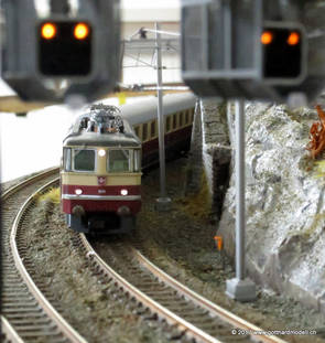 Fahrten am Leggistein08/01/17 LokbeschleunigungWas erst im letzten Film so richtig bemerkt wurde: Die Loks beschleunigen viel zu schnell ... Die maximale Höchstgeschwindigkeit habe ich ja bereits so angepasst, dass ein stimmiges Bild entsteht - jetzt wurde auch die Beschleunigung so eingestellt, dass der Eindruck entsteht, dass die Loks einen 1400 Tonnen schweren Zug beschleunigen. «Nachteil» diese Lösung - Testfahrten dauern nun noch länger ;-) 08/01/17 Fahren bis die Zentrale glüht ...08/06/17 FahrwegoptimierungenEinige Blockabschnitte auf der Anlage bestehen softwaretechnisch (z.B. wegen der Länge oder eines Gleiswechsels) aus zwei «logischen» Blöcken - das macht die korrekte Ansteuerung der Signale ziemlich aufwendig, da normalerweise der nächste Streckenabschnitt erst mit Erreichen des Zielblockes des aktuellen Fahrweges angefordert wird - und dann hat der Zug das Vorsignal oft schon passiert. Dies wurde nun in den betreffenden Zugfahrten mit der Option «Anfordern im vorletzten Block» korrigiert - der vorletzte Block ist nämlich der erste «logische» Block dieses langen Blockabschnittes und so wird die Fahrstrasse bereits dann reserviert und dann kann auch das Vorsignal (welches sich zwischen diesen zwei «logischen» Blöcken befindet) rechtzeitig mit dem korrekten Fahrbegriff angesteuert werden.