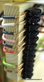Mit zunehmenden Anlagenfortschritt bekommt nun auch die Thematik «Verkabelung» wieder vermehrt Aktualität. Da der mittlere Abschnitt vom Pfaffensprung bis Eggwald nun gleistechnisch weitgehend fertiggestellt ist und als Nächstes die Rückmeldung und die Weichenantriebe- und Decoder angeschlossen werden sollen wird eine Verkabelung benötigt - und es sind nicht nur zwei Drähte, auch bei Digital nicht! Um die Längen der Kabel in Grenzen halten zu können werden die wichtigsten Elemente (Computer, Intellibox, Booster) zentral in der Mitte der Anlage angeordnet. Von dort aus gehen die Verbindungen sternförmig am Anlagenrand zu den Endpunkten, an geeigneten Stellen wird jeweils ein «Feinverteiler» platziert, von wo aus die Decoder und anderen Verbraucher gespiesen werden. Grobverteilung01/29/10 Zentrale KomponentenWie bereits erwähnt, sollen diese Komponenten irgendwo in der Mitte der Anlage zu stehen kommen. Nun wurde provisorisch die «Zentrale» eingerichtet mit IB, Power3, einem analogen Trafo und einem Umschalter (von Digital auf Analog).