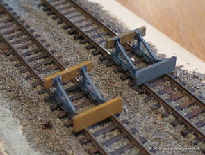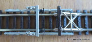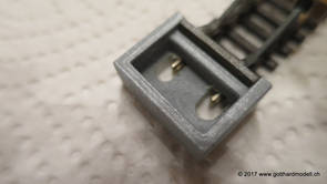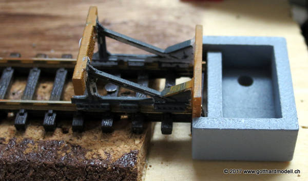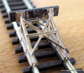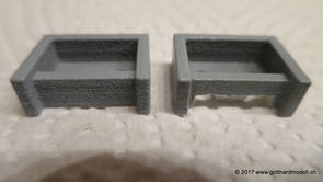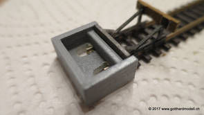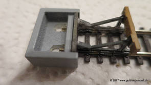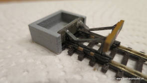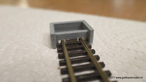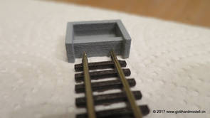 08/12/15 Und an der Gotthard-Nordrampe?Da soeben die beiden Abstellgleise 40+41 von Wassen in Betrieb gehen sollen stellt sich (wieder einmal) die Frage nach geeigneten Prellböcken. In Spur N gibt es die käuflich erwerbbaren von Minitrix, Fleischmann, Roco, Weinert u.v.m. Doch irgendwie stellen mich alle diese Modelle nicht zufrieden - sie erinnern mich zu sehr an die Deutsche Bahn und nicht an die SBB am Gotthard. Und so sehen die käuflich erwerbbaren Modelle aus - nicht wirklich das, was ich suche und mir auf der Anlage vorstellen kann: Selbstbau wäre auch ein Thema - das Problem ist das Trennen der Hassler-Profile, damit diese nicht zerdrückt werden und keine Gräte aufweisen - also habe ich nochmals im Internet gesucht und nach langem Suchen bei ShapeWays einen "echten" SBB-Prellbock gefunden - zwar in Spur 0 und H0, aber André Kunz ( 08/12/15 Version Gotthard I08/16/15 Version Gotthard II08/17/15 Version "Bülach"10/12/15 Version Gotthard II im Original10/13/15 Weitere Farbversionen10/17/15 Prellböcke in Wassen12/30/16 Das Haltezeichen |