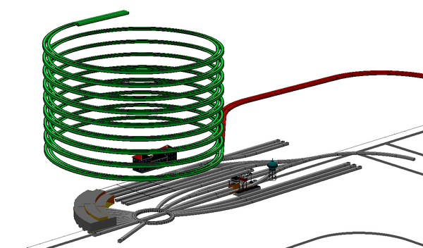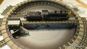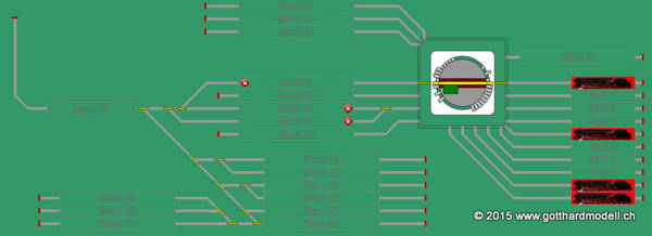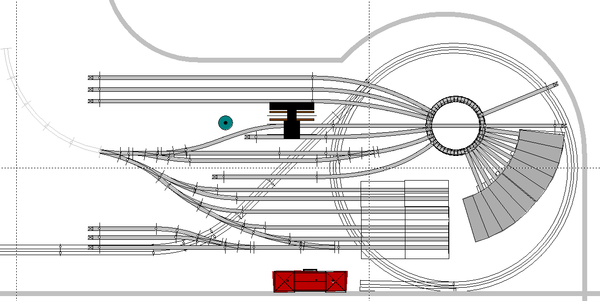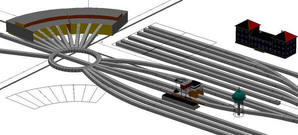 Drehscheiben an der Gotthard-Nordrampe02/10/15 Drehscheibe in ErstfeldDamit die Dampf- und Elektroloks auch ihre "publikumswirksame" Abstellmöglichkeit haben und nicht nur still und leise im Schattenbahnhof stehen, werde ich das Depot Erstfeld in Teilen nachbilden, auch die 1890 gebaute Drehscheibe wird nachgebildet. Es wird dies ein Kompromiss zwischen Vorbildtreue und Zweckmässigkeit werden, das Depot Erstfeld aber soll wiederkannt werden. Das Depot wird unter dem Wendel, welcher vom Gotthard-Nordportal in den Schattenbahnhof führt, zu liegen kommen - als Schaukasten sozusagen; ev. auch als ausziehbare Schublade, um weiterhin von unten in den Wendel gelangen zu können. Die geplanten Masse sind 2000x1000mm bei einer lichten Höhe von 300mm. Die Zufahrt zum Depot wird entweder vom Schattenbahnhof aus (was auch sinnvoll wäre um die Loks den Zügen beizustellen) oder aber von der Station Gurtnellen aus erfolgen. Hier eine erste Stilstudie: 02/15/15 Der Gleisplan zum Depot03/01/15 Drehscheibe mit Decoder gesteuertDie A3/5 auf der Drehscheibe in Erstfeld. Die Gleisanschlüsse sind gemäss Gleisplan vorbereitet, der 03/07/15 Die Lokremise und das Bahnbetriebsgebäude |