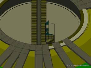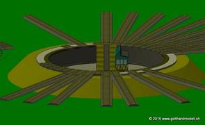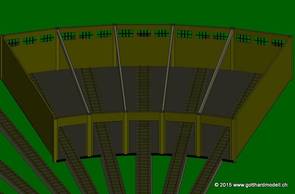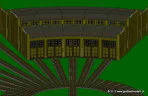 Die fertige Remise inkl. Drehscheibe für Giorgio nach seinem Plan. Und wenn Du jetzt meinst, daß es schade sei und man die Stützen und Abstützungen im Innern nicht sieht, weil die Tore geschlossen sind,.... |