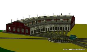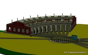 Ein Modellbahnkollege konstruiert für mich den Ringlokschuppen von Fleischmann in 3d mittels der Software WinRail - es werden immer mehr Details! Doch sieh selbst: