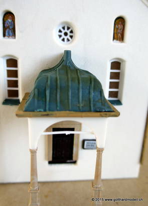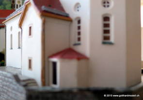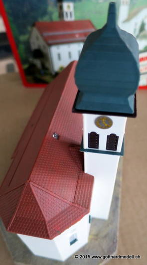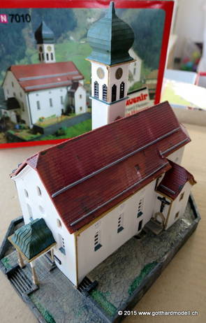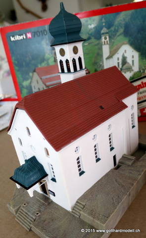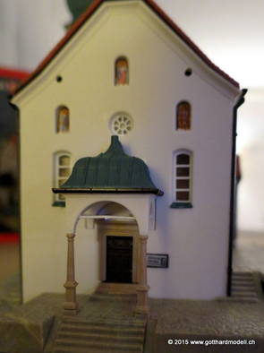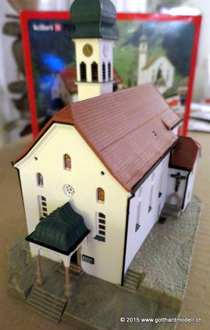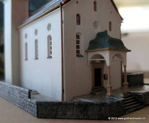 Kirche WassenDie im Jahre 1734 fertiggestellte dem hl. Gallus geweihte Pfarrkirche von Wassen liegt auf dem Kirchhügel in der Mitte des Tales. Wassen zeigt seine Kirche gleich dreimal 06/08/09 Das Vorbild04/11/15 Das Modell2007 konnte ich ein seit langem vergriffenes Modell der Kirche Wassen von Kibri erwerben - seither fristete die Kirche in der Verpackung ihr dasein. Heute nun kam der Tag, an dem das Modell begonnen wurde - hier die Baufortschritte. Was noch fehlt ist die farbliche Nachbehandlung und weitere Details. 04/12/15 Weitere Details und die farbliche Behandlung |