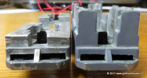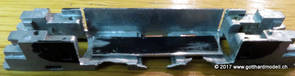 Dazu werden die Loks «ausgeschlachtet» (Motor, Getriebe, Platinen und «überschüssiges» Gewicht), gereinigt im Ultraschallbad und rollfähig gemacht. 10/19/17 Re4/4 IIZwei Arnold-Modelle Marke «Asbach uralt» (stammen aus den Jahren 1988-1990) wurden dazu verwendet - die Loks sind ziemlich «hochbeinig», was ihnen ein etwas ungewöhnliches Erscheinungsbild (verglichen mit aktuellen Modellen) gibt. Für den Schrotthändler genügt dies allerdings ;-) Wenn man den massiven Motorblock betrachtet bin ich mir nicht ganz sicher, ob «seinerzeit» auch das Gewicht im Massstab 1:160 nachgebildet wurde ... 10/19/17 Ae6/6 IIFür die Ae6/6 konnte ich auf zwei Minitrix-Modelle aus dem Jahr 1999 zurückgreifen - auch hier wurde alles was Gewicht verursacht entfernt (bei einem Rahmen kam etwas zuviel mit und musste wieder verstärkt werden) - das Gehäuse der 11414 «Bern» ist farblich wirklich über die Jahre hinweg so «abgeschossen», nur die «Ausbesserungen» wurden nachträglich angebracht. |