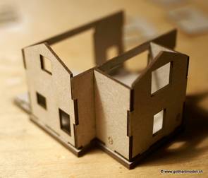 Streckenwärterhaus11/19/10 StreckenwärterhausDie typischen Streckenwärtergebäude - und davon benötige ich 9 Stück - wollte ich zuerst im Eigenbau herstellen, doch just zu diesem Zeitpunkt lernte ich Georg Holzhammer von Hier die ersten Muster anlässlich der Kleinserienausstellung 2010 in Bauma: |