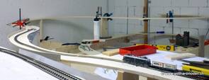 Die Testfahrten mit den verschiedenen Lokomotiven und den unterschiedlich "schweren" Zügen sind bis jetzt alle erfolgreich verlaufen, falls sich dies nicht ändert können die Trassen anschliessend definiv befestigt werden. 06/28/09 Der Film07/19/09 Der gesamte FilmWer 5 Minuten Zeit hat und sich den gesamten Film ansehen will - hier bitte: |
