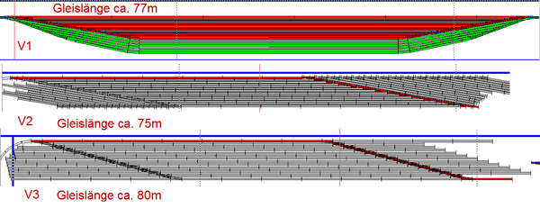 Aus diesem Grund wurden nun ein paar Varianten des Schattenbahnhofes gezeichnet mit dem Ziel