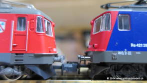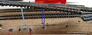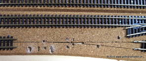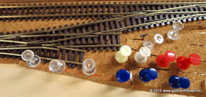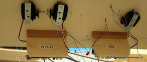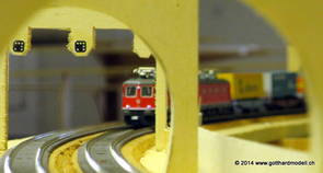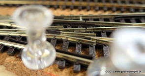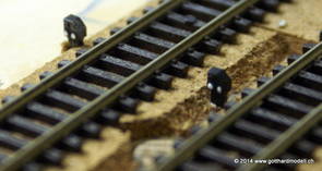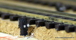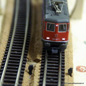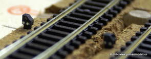 Die Strecke (Teil 6)08/26/14 Die Zwergsignale an der StreckeNachdem die Zwergsignale lackiert wurden, hat heute mal eine erste Stellprobe bei den Gleiswechseln der Gotthard-Nordrampe stattgefunden. Ein erstes Fazit - die Farbe haftet gerne an den Fingern; doch die Zwerge können problemlos im eingebauten Zustand "nachlackiert" werden. Hier die ersten Eindrücke: 09/13/14 Eindrücke von der Strecke09/14/14 Weitere Eindrücke von der StreckeUnd ja, ich hab eine neue Kamera - merkt man es? Da klein und handlich können so auch Bilder aus der "Warnwestenposition" (=auf dem Geleise) gemacht werden, was völlig neue Perspektiven eröffnet. 09/19/14 Der Streckendienst macht sich bereit07/26/15 Gleisbau in WassenInspiriert vom Besuch bei Rolf, hat heute der Weichenumbau in Wassen begonnen - die "alte" Weiche wurde ausgebaut und der Einbau der Dreiwegweiche vorbereitet 08/11/15 Weicheneinbau in WassenHeute wurde die neue Dreiwegweiche eingebaut - dazu musste zuerst das Gleis 1 gekürzt werden, der Unterbau des alten Gleises entfernt und die neue Gleislage bestimmt werden. Nun ist die Weiche eingebaut und die Bahnarbeiter haben den Unterbau soweit vorbereitet, dass anschliessend die Gleise 40+41 verlegt werden können. 08/16/15 Einbau der Abstellgleise 40+41 in Wassen10/24/15 Inbetriebnahme Weichen in Wassen10/25/15 Die letzten Weichen ...10/25/15 Wie geht's jetzt weiter?Wenn jetzt dann alle Weichen fertig "digitalisiert" sind, kommt anschliessend die Rückmeldung an die Reihe. Dazu werden die Rückmeldemodule platziert und an den LocoNet-Bus angeschlossen. Jetzt werden die zusätzlich benötigten Gleiseinspeisungen erstellt und dann können die Gleise aufgetrennt und die Gleisabschnitte an die Rückmelder angeschlossen werden - soweit die Theorie ... 10/31/15 Alle Weichen sind betriebsbereit |