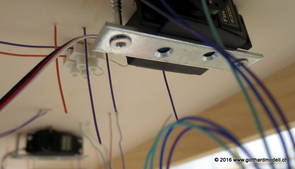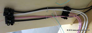 12/27/15 Die ersten RückmelderHeute wurden die ersten beiden LocoNet-Rückmelder montiert (für den rechten Anlagenteil; namentlich die Bereiche Pfaffensprung und Leggistein), einer für das Südgleis und der andere für das Nordgleis - dies, da diese beiden Gleise später aus unterschiedlichen Boostern gespiesen werden. Die Verkabelung ist folgendermassen aufgebaut: