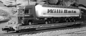 SBB Saadkms RoLa Niederflurwagen beladen mit "Willi Betz" | | | Betriebsnummer | | | Baujahr | | | Gewicht | | | Fassungsvermögen | | | Modell | Fleischmann 827301 | | Dokumente | | Besonderes / Bemerkungen | |