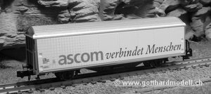 SBB Hbis Schiebewandwagen "Ascom verbindet Menschen" | | | Betriebsnummer | | | Baujahr | | | Gewicht | | | Fassungsvermögen | | | Modell | Minitrix 15605.904 | | Dokumente | | Besonderes / Bemerkungen | |