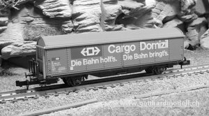 SBB Hbis Schiebewandwagen "Cargo Domizil - Die Bahn holt's. Die Bahn bringt's." | | | Betriebsnummer | | | Baujahr | | | Gewicht | | | Fassungsvermögen | | | Modell | Roco 24009 | | Dokumente | | Besonderes / Bemerkungen | |
