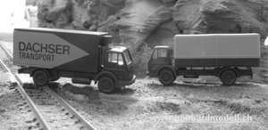 Obwohl die Autobahn nicht dargestellt wird komme ich nicht umhin, doch auch Strassenfahrzeuge einzusetzen. Diese werden die alte Kantonsstrasse, die Sustenpassstrasse und die Bahnhöfe Wassen und Göschenen (Postautostationen) verkehrstechnisch beleben. Auch die Holländer mit ihren Wohnwagen werden zu sehen sein; die G Bttr III der Pz Hb 47 Abt wird ihre Raupenfahrzeuge wohl in Göschenen auf die Bahn verladen müssen. Da die Kantonsstrasse durch den zunehmenden Verkehr teilweise in einem gar schlechten Zustand ist werden Baustellen die Staus auch nicht kürzer werden lassen. Damit die Fahrzeuge auch "regelkonform" auf den Strassen verkehren dürfen, werden diese mit Kennzeichen nachgerüstet - Schwarz-WeissDu siehst die Bilder nicht in Farbe? Und vergrössern lassen sie sich auch nicht? Auch sind keine Detailbeschreibungen sichtbar? Dann sofort zum Optiker! Nein, Scherz beiseite - nur registrierte Benutzer profitieren von diesen Zusatzinformationen, Besucher sehen "nur" die grundlegenden Angaben. Bau- und Winterdienstfahrzeuge![]() Caterpilar Lastwagen ![]() Caterpilar Bagger CAT315 ![]() Caterpilar Radlader CAT906 ![]() Caterpilar Baggerlader CAT420 ![]() Minibagger HR 18 ![]() Unimog U411 mit Schneepflug Postauto![]() MB 404 N ![]() MB Citaro ![]() MB 404 N