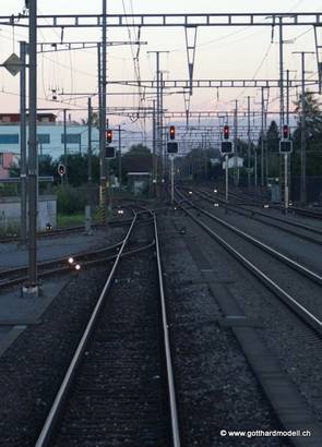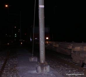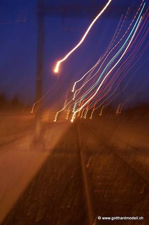 Teil 3 - 201004/15/10 Auf der Brücke05/11/10 RBL mit spezieller Beleuchtung05/24/10 Letzte Reise der Ae6/6 11403Originaltext des Lf: «Letzten Freitag war der letzte Gang der 11403. Auf den Fotos sieht man die ausgeschlachtete Ae6/6 auf Zwischenhalt im RBL von Bellinzona nach Emmenbrücke, wo sie verschrottet wird. Mal etwas andere Einblicke... Da die Bremsen nicht mehr arbeiten ist ein Schlauch durch die Maschine gelegt, der dann durch jeweils eine Lampe ins Freie geht.» |