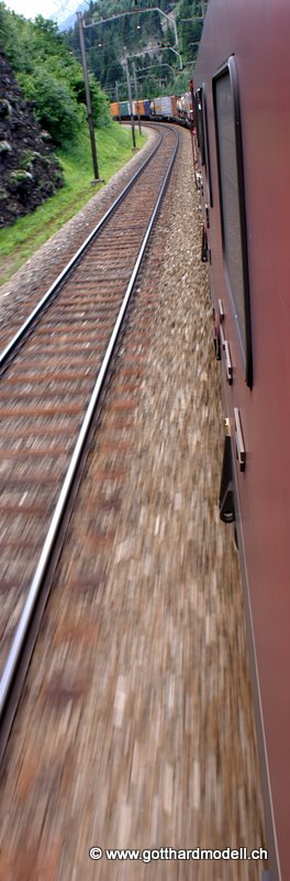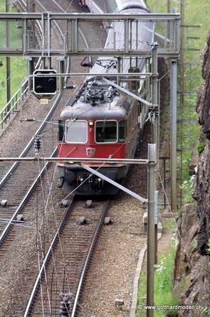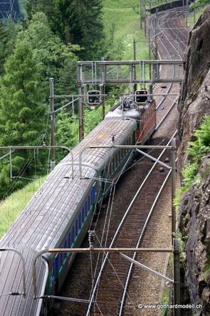 Per Schiebedienstfunk meldet sich der Lokführer der Re4/4, dass er abgekuppelt habe und kurz darauf per Zugfunk der Fahrdienstleiter, dass wir noch einen EC passieren lassen werden - nun, Bruno und mir soll's recht sein, so verlängert sich unsere Fahrt ;-) Göschenen - Airolo