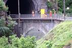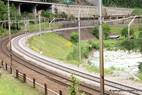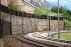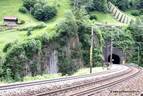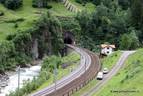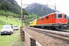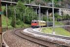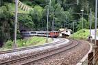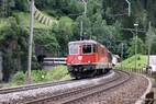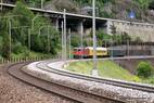 Dies ist wohl einer der beliebtesten Fotostandorte an der Gotthard Nordrampe insgesamt - die südwärts fahrenden Züge können in einer leichten Linkskurve in ihrer gesamten Länge abgelichtet werden; im Hintergrund ist die Kirche von Wassen ebenfalls noch im Blickfeld: