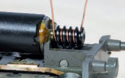 Original-Motor und die entsprechenden Kontaktfedern sind bereits entfernt. |