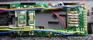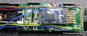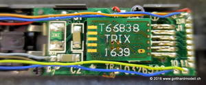 Decodereinbau09/03/16 Einbau ESU Lokpilot V4 micro DCC Decoder in Minitrix Ae8/14Die Decoderschnittstelle befindet sich in der Lokhälfte mit nur einem Stromabnehmer - das Gehäuse an der Farbtrennkante bei der Lokmitte leicht aufspreizen und abheben. Normalerweise hat die Lok eine Schnittstelle nach NEM651, doch da sich unmittelbar nach dem Kauf zwei! Decoder als Rauchgenerator entpuppt haben, hatte sich der damalige Händler (leider ohne mir es mitzuteilen) damals schon (2005) dazu entschieden, den So musste ich für den Decoderwechsel den alten Trix66838-Decoder auslöten und der neue ESU Lokpilot-Decoder wurde nach dem Verzinnen der Leiterbahnen auch gleich wieder eingelötet. |