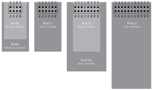 PluX16: 20.0x11.0mm PluX16S: 28.0x16.0mm