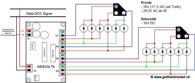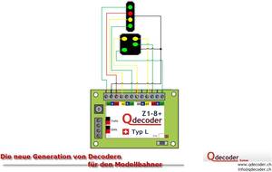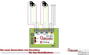 für Zubehördecoder vom Typ Z1-8+. Hier findest Du die Anschlussschemen, wie ich die Signale an diese Decoder anschliesse. Die möglichen Fahrbegriffe findest Du unter Signalisation. Z1-8+ SBB Typ LZ1-8+ SBB Typ Z (2 Zwergsignale)Zu beachten: Der Qdecoder kommt im Gegensatz zu anderen Produkten Z1-8+ SBB Typ Z (8 Zwergsignale)Zu beachten: Der Qdecoder kommt im Gegensatz zu anderen Produkten |