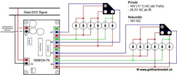 Anschlussschema eines WDECN-TN mit zwei Zwergsignalen |