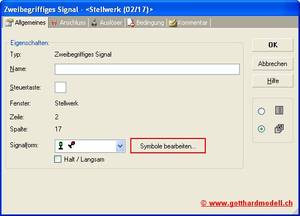 Im Gleisplan positionieren und das Signalsymbol doppelklicken