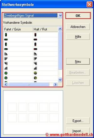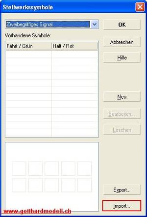 Das Stellwerkssymbolfenster öffnet sich. Jetzt den Button "Import" drücken