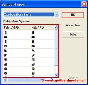 Die Signale sind nun importiert und im Stellwerkssymbolfenster sichtbar - wieder mit "OK" bestätigen