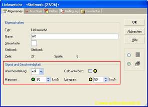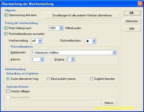 Die Einstellmöglichkeiten bei den Weichen wurden um die Geschwindigkeitsregelung in Abhängigkeit der Weichenstellung (Gerade, Ablenkung) und die direkte Einbindung eines Rückmeldedecoders für die Weichenlage erweitert.