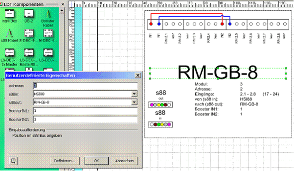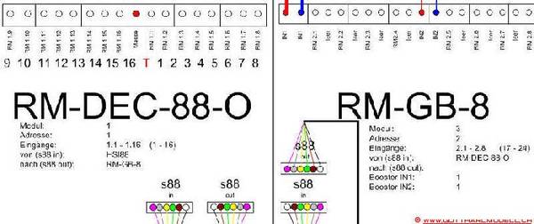 und so kann ein Verdrahtungsplan aussehen ![]() Hier siehst Du auch die automatische Nummerierung der Eingänge, welche die Besonderheiten des s88-Busses berücksichtigt: Weitere Anwendungsbeispiele findest Du hier : Tipps und Tricks - Hosenträger ![]() |