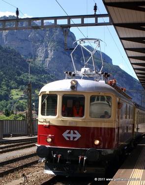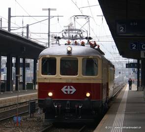 Youtoube, © Transalpin76, hochgeladen am 05.06.2011 Samstag, 4. Juni 2011, Bahnhof Zug, Gleis 2. Ungeduldig warte ich auf den TEE-Extrazug, der mich zur Bahnplattform bringen soll - Thema «natürlich» die Trans Europ Express Züge. Und pünktlich trifft er ein, der Extrazug - die Frage nach der Wagennummer erübrigt sich - der Zug hat nur einen Wagen. Nach dem spannenden Vortrag von Thomas Köppel, ehemaliger Mitarbeiter SBB-Historic über die Entstehung des TEE-Systems konnten die Fitness-Fahrten des Depots Erstfeld beobachtet werden - ich hingegen habe die Urner Eisenbahn-Amateure und deren Anlage besucht. Nach dem Mittagessen im Frohsinn gings dann wieder ins Depot - und die Loks (welche wegen Reinigungsarbeiten im Depot alle draussen standen) präsentieren sich im Sonnenlicht: So ging ein spannender und abwechslungsreicher Tag in Erstfeld wieder zu Ende - der nächste folgt dann wieder am 3. September 2011 - Thema Ae8/14 - Giganten am Gotthard. |