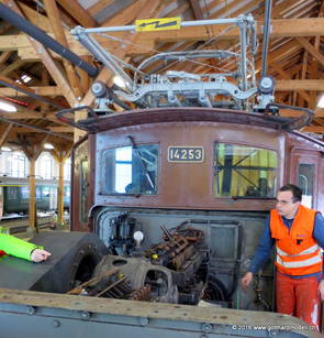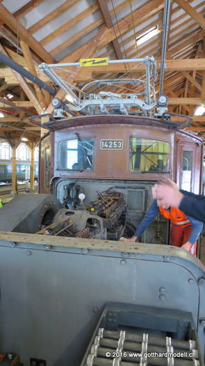 Das Krokodil Ce6/8II 14270 fährt wieder!Leider aber nicht aus eigener Kraft, sondern gezogen von ihrer braunen Schwester Ce6/8II 14253. Da wegen dem Ausfall von Biasca für das Eröffnungsfest vom 4./5. Juni 2016 nun beide Gotthard-Dampfloks A3/5 und C5/6 in Erstfeld stationiert werden, musste die alte Dampflokremise freigeräumt und das Krokodil umplatziert werden.01/16/16 Die gläserne WerkstattKurzentschlossenen bot das Team Erstfeld die einmalige Gelegenheit an, das Krokodil Ce6/8 II 14253 während den Unterhaltsarbeiten ohne Hauben und Führerstandsrückwände zu besichtigen - sicherlich ein einmaliger Einblick in der heutigen Zeit. Also ab nach Erstfeld - mit dem Zug notabene, da der Wintereinbruch doch Einiges an Schnee auf die Strassen im Gebirge gezaubert hat. Auch für das leibliche Wohl war gesorgt - der Risotto war ausgezeichnet! Hier die ungewohnten An- und Einblicke, die man an diesem Tag erleben konnte: 08/01/15 1. August Brunch im Lokdepot ErstfeldAm 1. August 2015 finden die ordentlichen Fitnessfahrten der in Erstfeld beheimateten historischen Fahrzeuge von SBB Historic statt. Im Anschluss daran laden Sie das SBB Historic Team Erstfeld und das SBB Personalrestaurant Erstfeld, die «Milchküche», zum 1. August Brunch ein. Geniessen Sie diesen inmitten der historischen und modernen Lokomotiven im denkmalgeschützten Depot Erstfeld. Hier ein paar Impressionen: |