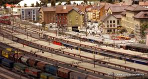 Eingeladen bei Verwandten in der unmittelbaren Nähe, habe ich die Gelegenheit dazu benutzt, den Kaeserbergbahnen wieder einen Besuch abzustatten. Vor zwei Wochen habe ich das Sonderheft des Eisenbahn-Journals «Eine Schweizer Modellbahn» erhalten und mich dazu entschlossen, die Anlage wieder aus der Nähe ansehen zu wollen, auch da es mittlerweile erlaubt ist, zu photographieren. Die Bilder sind alle ohne Blitz entstanden, was bei manchen Bildern zu «interessanter Unschärfe» geführt hat. |