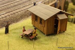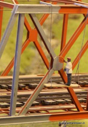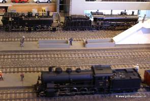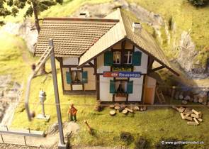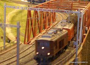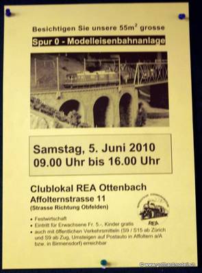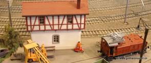 Am Wochenende vom 05. Juni 2010 haben die Eisenbahnamateure aus dem Reppischtal geladen - und da es nur einen «Steinwurf» von mir entfernt ist (liegt übrigens unmittelbar neben dem Pub, in welchem wir unsere Jahresendtreffen durchgeführt haben), habe ich die Gelegenheit genutzt, die Anlage zu besichtigen. Diese befindet sich ebenerdig in einem grossen Raum, nebenan ist gleich noch die Werkstatt und ein Aufenthaltsraum. Wäre der Besucherandrang zu der Zeit, als ich die dort war, grösser gewesen wäre es vermutlich doch etwas eng geworden. So aber hatte ich «freie Schussbahn» - es gab viele Details zu photographieren. |